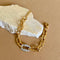 Genesis catches the light and the moment. This gold-tone stainless steel bracelet frames the wrist with smooth, sculpted links, while a pavé-crystal oval sparkles at center. It feels modern yet timeless, the kind of piece you reach for on big days and quiet ones.