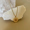 Verve 05 is a gold plated necklace with quiet drama and everyday ease. A twisted rope chain holds a round medallion, detailed with beaded rings and a smooth center cameo profile. Its warm, high-polish finish catches the light just right, giving your neckline a glow that feels refined and effortlessly personal.