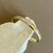 Booucheron presents a gold plated bangle shaped as a sleek open cuff. The silver tone body holds a central ribbed gold inlay that brings subtle texture and a refined glow. At the midpoint, a petite square setting sparkles with a clear princess-cut stone framed by delicate pavé. Smooth edges and a mirror polish give a clean, modern finish.