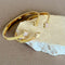 Graceful and refined, the Lisandy gold plated bangle traces the wrist with a slim open cuff. Each end features a four leaf clover, one pavé set with clear stones, the other smooth and glossy, both framed with delicate beading. A fine textured band adds a subtle sparkle, keeping the profile sleek and easy to style.