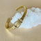 Pulso gold plated bangle brings a refined spark to your everyday. A rigid cable-style band catches the light, while a teardrop horseshoe front is set with clear pavé stones for soft brilliance. The polished barrel closure keeps the look clean and modern, with a hint of equestrian charm. Crafted with luminous gold plating and smooth edges for comfortable wear.