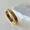 Bliss 05 brings a soft glow to every moment. This gold-tone stainless steel bangle catches the light with a high-polish finish, framed by delicate milgrain edges. Embossed floral rosettes circle the band, adding a hint of vintage charm that still feels clean and modern. It is the kind of piece that makes everyday outfits feel a little more special.
