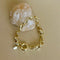Tessera is a study in quiet glamour. This gold plated bangle pairs a sculpted, ribbed band with a luminous center motif. A baguette-cut crystal sits within a square frame, flanked by pear pavé accents in a contrasting white-metal finish. The profile is slim, polished, and designed to feel effortless from first wear.