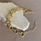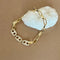 Onyx 17 balances clean geometry with soft shine. Alternating polished links and pavé-set crystal links create a refined rhythm, finished in warm yellow gold. The structured profile feels modern, the sparkle stays crisp yet understated. A gold plated bracelet designed to feel personal from the first clasp.