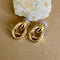 Astrid brings a fresh take on chain link earrings. Three interlocking shapes catch the light: a smooth oval at the post, a polished ring, and a sculpted teardrop with subtle snakeskin texture. The mix of shine and pattern gives these gold plated earrings a modern edge with a hint of vintage charm.