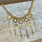 A modern nod to romance, this gold plated necklace drapes in a refined Y silhouette. Alternating oval links and petite bead stations flow along the chain, while pairs of rope-textured rings create a rosette motif with crisp detail. The finish is highly polished for a luminous look.