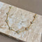 Refined and quietly radiant, the Cleefer gold plated necklace traces the neckline with a series of four-petal stations. Each clover is softly sculpted, with fine ridges on the petals and a polished bead at the heart. Slender cable links keep the spacing airy and balanced, giving the piece a graceful, easy drape.
