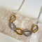 Elva blends modern edge with everyday ease. This gold plated necklace showcases five oversized oval links in an alternating gold and silver palette, joined to a fine two-tone cable chain. Smooth, high-gloss surfaces reflect the light and draw the eye to your neckline.