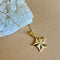 Jade is a stainless steel necklace with a gleaming eight-pointed star pendant. Crafted in a warm gold tone, its beveled facets and pavé clear stones catch the light with every move. The metal is hypoallergenic and tarnish-resistant for everyday shine. A fine cable chain and ridged bail give it a clean, refined finish.