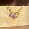 Bring the shore a little closer with the Sea Side | Gold Plated Charm Necklace. This gold plated charm necklace pairs a chunky paperclip chain with three keepsakes: a lavender enamel nautilus, a two tone scallop shell, and a petite flower with a purple center. The glossy finish and soft color catch the light like water at sunset, sparking memories of warm sand and easy days.