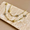 A celestial statement with a modern attitude. The Iconic gold plated necklace drapes the neckline with luminous ease, turning a quiet moment into something unforgettable.