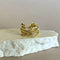 Bliss brings a sculptural touch to your everyday style. This gold plated ring layers slender, wavy bands into one refined piece, blending smooth and finely ridged textures for subtle shimmer and depth. The polished finish and fluid lines create a modern look that still feels timeless, making it an easy choice for gifting or treating yourself.