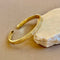 Kavelo reimagines the classic cuff with a gold plated bangle shaped in a slim oval arc. The high polish offers a mirror-like shine, while the ribbed band adds crisp dimension. At the center, a discreet pavé panel of clear stones brings refined sparkle. The open gap allows easy slip-on wear, and rounded ends rest smoothly on the wrist.