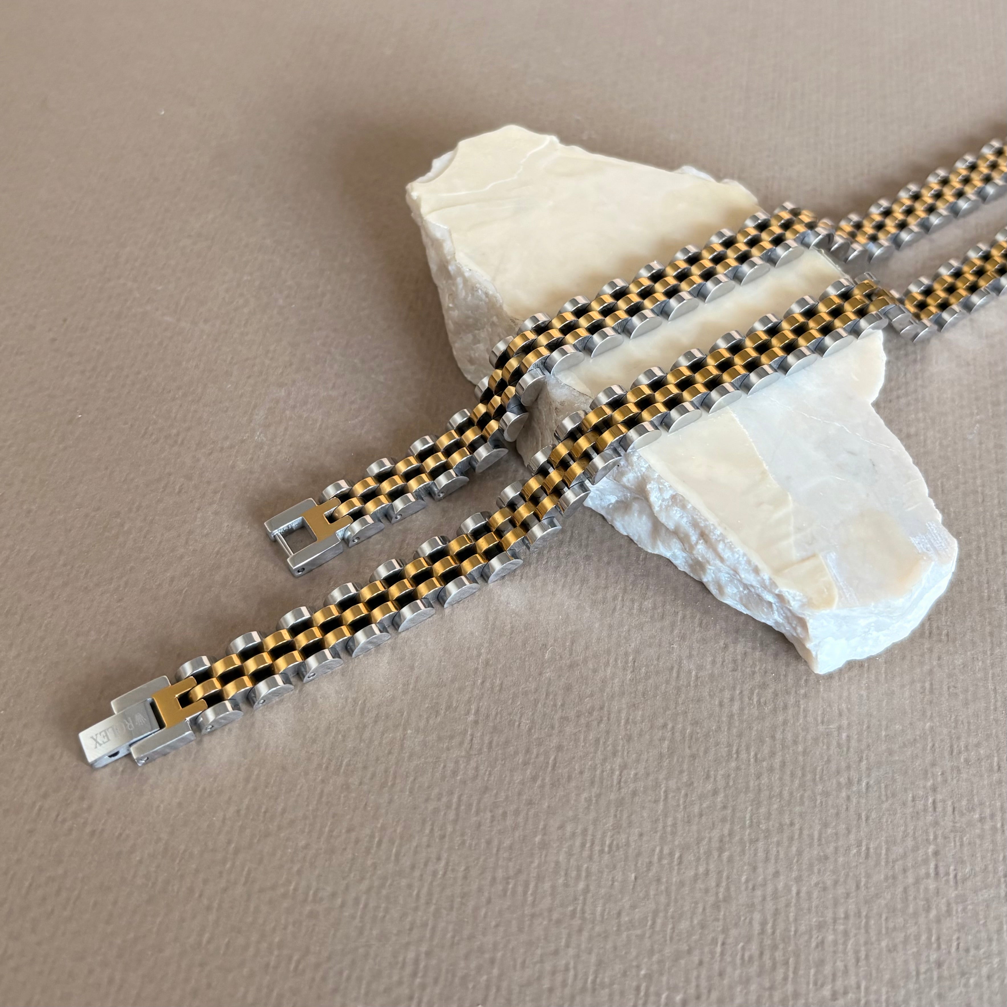 Easy to dress up or keep casual. Mixed metals pair with everything and catch the light with every move. Wear it solo for crisp shine or layer it for a richer story. Add RLX 08 to your collection today.
